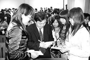 5月14日下午,周口市“青年創(chuàng)業(yè)行動”青年典型事跡巡回報(bào)告會在周口某高校舉行。報(bào)告會后,青年創(chuàng)業(yè)典型正在為學(xué)生簽名?! 。ū?攝)