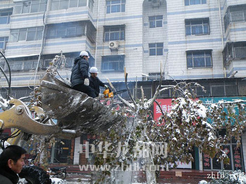 11月13日,周口義工在清理樹木積雪。(感恩的心 攝)