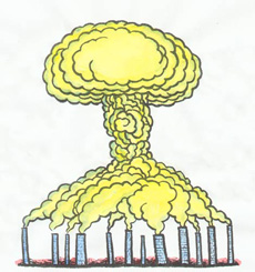 ??? 蘑菇云,戰(zhàn)爭(zhēng)和死亡的代名詞,人們說(shuō)起它無(wú)不避若蛇蝎,然而可笑的是,人類對(duì)于空氣污染,全球變暖,這顆無(wú)形的原子彈卻是重視不足,任它漸漸發(fā)揮出威力。須知,戰(zhàn)爭(zhēng)只能毀滅一個(gè)國(guó)家或者民族,但是污染地球,導(dǎo)致的是就是全人類的滅亡。