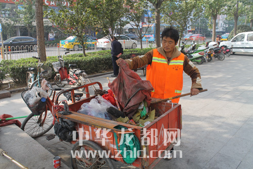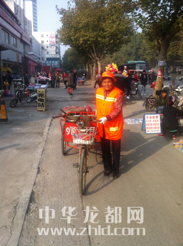 ????由于周口荷花市場北門附近有幾家經營服飾的大型賣場和許多經營各色小吃的店鋪,因而這里極具人氣。據說,每天從此北門經過的市民超過10萬人。人一多,地面的衛(wèi)生狀況自然不容樂觀?!捌綍r,我們是‘一班一人’清掃,但是到了節(jié)假日,人流量往往是平時的幾倍,垃圾量自然增多,我會和另外一位同事分頭打掃?!蓖跸架幷f。