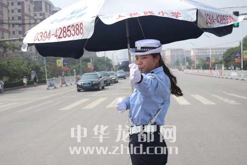 ①交警在指揮交通。