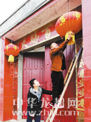 貼對聯(lián),掛燈籠,喜迎新春。 (記者 王映 攝)