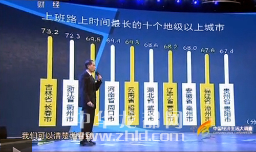 3月9日,央視財(cái)經(jīng)頻道《中國(guó)經(jīng)濟(jì)生活大調(diào)查2014—2015》發(fā)布多組數(shù)據(jù),其中一組數(shù)據(jù)顯示:中國(guó)人上班路上的時(shí)間達(dá)到55分鐘,比世界平均水平長(zhǎng)15分鐘。上班路上時(shí)間最長(zhǎng)的十大地級(jí)以上城市依次為:吉林長(zhǎng)春、浙江衢州、重慶市、河南周口、云南昭通、湖北武漢、遼寧營(yíng)口、安徽亳州、福建漳州、貴州貴陽(yáng)。其中,周口以69.4分鐘的上班路上時(shí)間位列第四。