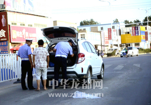 ????7月28日下午,在市區(qū)大慶路和慶豐街交叉口,一輛轎車正在接受交警檢查。