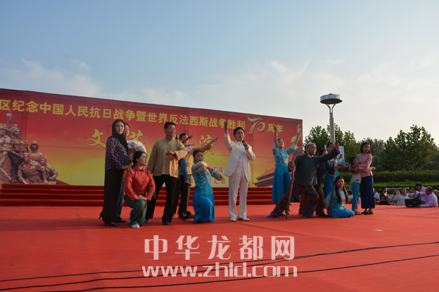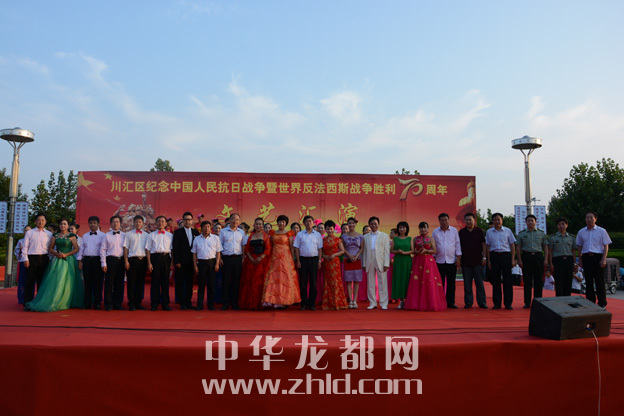 ????龍都網(wǎng)訊(記者 孫艷? 通訊員 理效明 崔海燕) 9月1日,行政新區(qū)廣場上人頭攢動,熱鬧非凡。由川匯區(qū)委宣傳部主辦、區(qū)文化局承辦的慶??箲?zhàn)勝利暨世界反法西斯戰(zhàn)爭勝利70周年文藝匯演在這里舉行。市委宣傳部常務副部長陶韜及區(qū)領導郭志剛、陳朝棟、葉長麗、張劍鋒、梁顯學、王琳、許四軍、李揚、王崇山,區(qū)人武部部長蘇運才等與現(xiàn)場上千名群眾一起觀看了演出,共同追思中華民族抗戰(zhàn)時期那段血與火的歷史,紀念中國人民抗日戰(zhàn)爭和世界反法西斯戰(zhàn)爭勝利70周年。