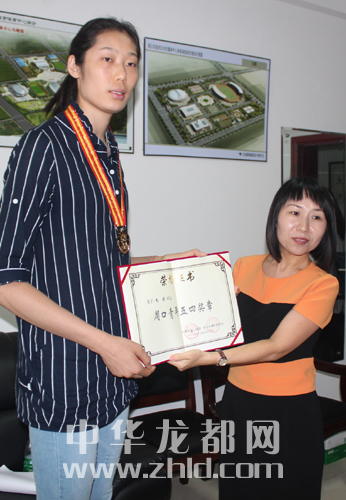 團(tuán)市委為朱婷頒發(fā)榮譽(yù)證書