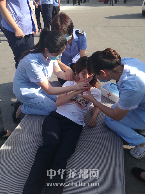 ????在模擬車站大廳發(fā)生火災(zāi)的演練中,車站值班站長第一時(shí)間撥通119、120求救,并組織工作人員幫助旅客有序撤離。車站醫(yī)療搶救組對(duì)撤離到安全地帶的受傷旅客進(jìn)行施救(如圖二)。大廳內(nèi)人員全部撤離后,救援人員手持滅火器迅速組織滅火(如圖三)。