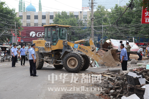 ????通過多日來不懈努力,西大街(中州路至荷花路段)和老街上的占道簡易棚,除一處尚在自拆外,其余悉數(shù)拆除;陳州街的各類私搭亂建構(gòu)筑物也全部拆除,小吃攤點(diǎn)整齊有序地?cái)[放在交通隔離護(hù)欄以內(nèi)。