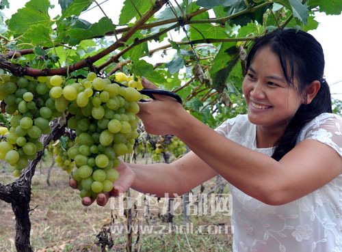????金秋送爽,一名游客在玉桂千畝生態(tài)葡萄園采摘葡萄。近年來,我市積極推進(jìn)農(nóng)業(yè)示范園建設(shè),打造了玉桂千畝生態(tài)葡萄園等一批特色農(nóng)業(yè)基地,創(chuàng)新農(nóng)業(yè)旅游融合發(fā)展思路,引導(dǎo)特色農(nóng)業(yè)基地開發(fā)建設(shè),取得了良好效果。據(jù)了解,玉桂千畝葡萄園堅(jiān)持走規(guī)?;⑸鷳B(tài)化、精品化、綠色化的路子,15種國內(nèi)優(yōu)質(zhì)葡萄品種可持續(xù)采摘至9月中下旬。