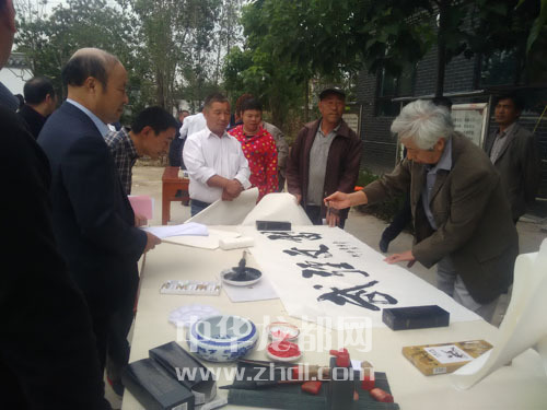 ????當(dāng)日在李寨文化廣場舉行的啟動儀式上,46名省市書畫名家、志愿者同時亮相,主持人逐一介紹時,現(xiàn)場村民就開始摩拳擦掌,為求字求畫做準(zhǔn)備?;顒娱_始后,文化廣場上一字排開的書畫案臺很快被村民圍滿(如圖)。國家一級美術(shù)師、中國美術(shù)家協(xié)會會員翟東奇,北京榮寶齋畫院特約畫家朱文華等大家的作品更是供不應(yīng)求。面對熱情的“粉絲”,書畫家們也被感染,揮毫潑墨一刻不停,送走最后一位村民,已是午后1時。