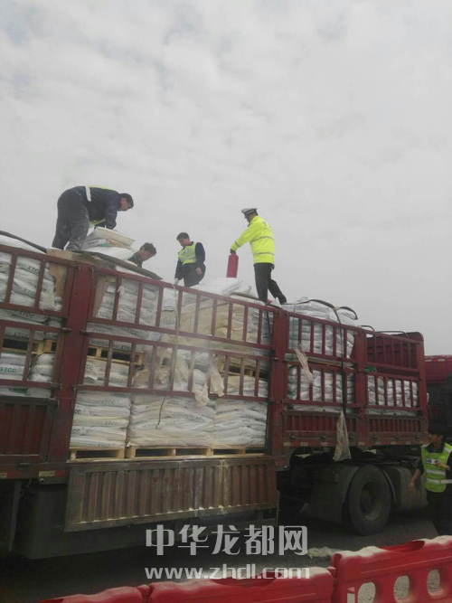 ????接到求助后,4位高速交警迅速趕往現(xiàn)場,并在第一時(shí)間把警情匯報(bào)給高速指揮中心。隨后,中隊(duì)長杜金濤帶領(lǐng)所有執(zhí)勤民警全員參與救援。他們一邊設(shè)置警示區(qū)域,疏散圍觀群眾,一邊通知收費(fèi)站和高速路政人員暫時(shí)禁止車輛駛?cè)耄乐勾紊鹿拾l(fā)生。