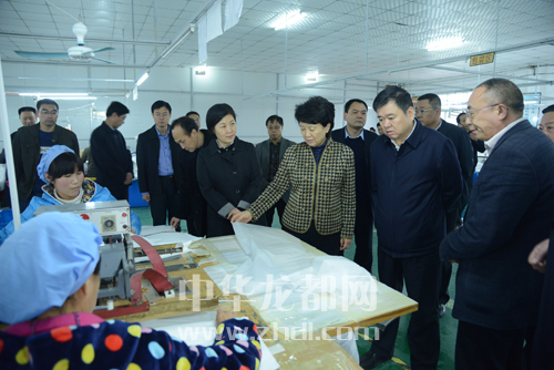 ????省委常委、宣傳部長趙素萍一行在市領導徐光等人的陪同下,到鄲城縣企業(yè)調(diào)研。記者 王亞輝 攝