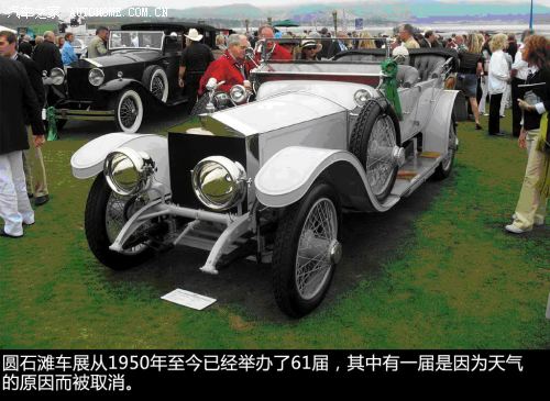 ??? 第二次的圓石灘車展是在1951年5月27日舉辦,當(dāng)時(shí)只有23輛車參展。接下來幾十年中,除了1960年,因?yàn)樘鞖鈵毫拥脑蛉∠囌?;以?963到1965年間長期大雨磅礴導(dǎo)致了參展草地?fù)p壞不可用,車展地點(diǎn)出現(xiàn)一些變動(dòng)外,圓石灘車展一直舉辦的都非常順利,并且由于其參展車型都是價(jià)值連城的古董老爺車及未來的概念車,所以它還獲得了“全球最豪華的汽車展”稱號。
