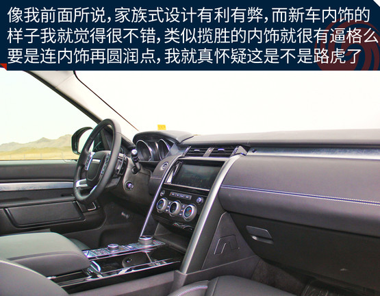 內(nèi)飾趨向家族化設(shè)計,與攬勝的內(nèi)飾差不多。特別是在內(nèi)飾的做工和用料依舊保持了奢華的質(zhì)感,只是多了些簡約的味道。高級的材料隨處可見,讓我經(jīng)?;秀蔽沂遣皇情_錯了車,這樣的后果很明顯,讓我對它感覺會越來越溫柔,要是開著它去與風沙、泥土、亂石或大漠相約,我怎么能舍得?