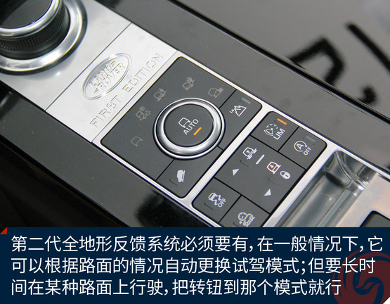 第二代全地形反饋系統(tǒng)必須有,它的特點是在任何非AUTO模式下,且車速低于50公里/時,車身會自動升高75毫米,以此應(yīng)對復(fù)雜越野需求。而全地形反饋系統(tǒng),同時能夠提升車輛的發(fā)動機、變速箱、中央差速器和底盤的性能,使駕駛者可以根據(jù)具體地形選擇合適的駕駛模式。