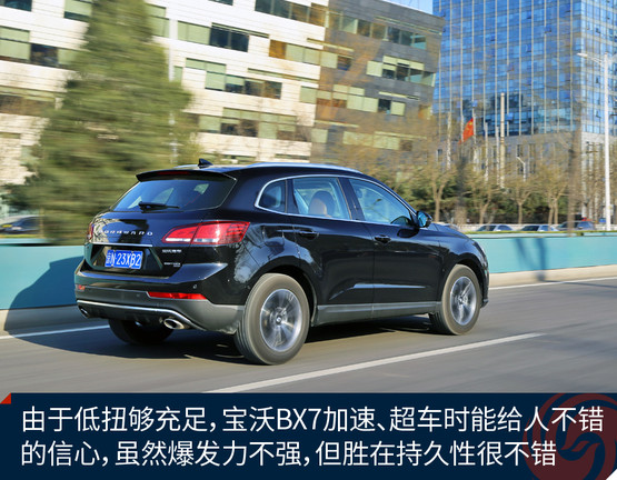 動力方面寶沃BX7擁有一臺2.0T渦輪增壓直噴發(fā)動機(jī),目前在售的均為高功率版本,擁有165千瓦的最大功率和300牛頓·米的峰值扭矩,這臺2.0T發(fā)動機(jī)是寶沃聯(lián)合德國FEV公司共同研發(fā),最大功率數(shù)據(jù)可觀,但峰值扭矩因?yàn)樽兯倨髂艹惺茏畲笈ぞ氐南拗票辉O(shè)定得略微保守,可見這還并非這臺發(fā)動機(jī)的全部潛力。令人欣慰的是,這臺2.0T發(fā)動機(jī)峰值扭矩在1500rpm即可輸出,這個(gè)優(yōu)點(diǎn)讓它在低轉(zhuǎn)速區(qū)即可有充沛的牽引力,駕駛起來顯得更加輕松,超車的時(shí)候信心十足。