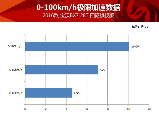 由于有四驅(qū)系統(tǒng)保障,寶沃BX7四驅(qū)版車型在全力加速起步瞬間非常平穩(wěn),6AT變速器換擋還是平穩(wěn)優(yōu)先,所以全力加速時(shí)升檔也沒有太明顯的頓挫、動力中斷或者不平順,整個(gè)過程很舒服,而10秒出頭的測試成績對于這臺2.0T動力的中型SUV也很不錯(cuò),請別忘了因?yàn)榕c變速器的匹配,這臺2.0T發(fā)動機(jī)的扭矩被限制在300牛頓·米,也就是說這臺“高功率”發(fā)動機(jī)其實(shí)并沒使出全力,我們完全有理由相信解除封印后它理應(yīng)跑得更快。