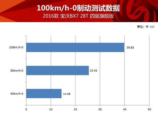 加速過后就要減速,寶沃BX7的制動系統(tǒng)在測試中經(jīng)受住考驗(yàn),不到39米的成績對于一臺SUV而言已經(jīng)算是很不錯(cuò),而且多次測試并未出現(xiàn)制動力有衰減的現(xiàn)象。
