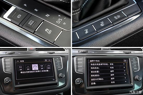 與外觀相似,Tiguan內(nèi)飾設(shè)計同樣以凌厲硬朗的線條為主,中控臺采用非對稱造型,空調(diào)及多媒體略向駕駛側(cè)傾斜,飾條及顏色搭配依舊是大眾的經(jīng)典風(fēng)格,雖然大面積覆蓋軟性搪塑材質(zhì),但手感稍硬,不過接縫相當(dāng)緊實,足以展現(xiàn)進(jìn)口車風(fēng)范。