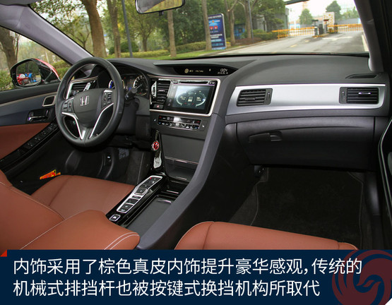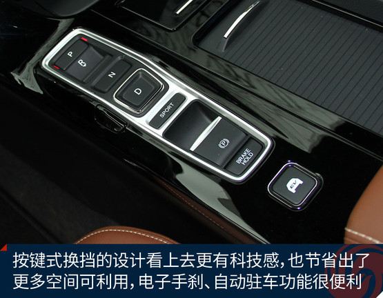 車內(nèi)采用了新的棕色真皮內(nèi)飾,而且還覺得缺了點(diǎn)什么。沒錯(cuò)!之前的排擋桿不見了,取而代之的是按鍵式換擋機(jī)構(gòu),看上去更有科技感,控制區(qū)也更簡潔了。