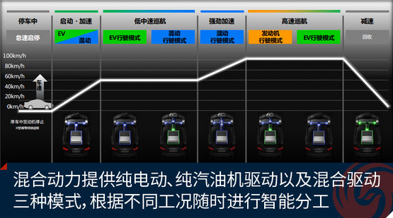 只有當(dāng)車速高于65公里/時(shí)且油門開度合適時(shí),這套動(dòng)力系統(tǒng)才會(huì)有可能讓發(fā)動(dòng)機(jī)單獨(dú)驅(qū)動(dòng)車輪,但此時(shí)其還有一部分工作是為電動(dòng)機(jī)充電。而在此時(shí),如果車輛向前的驅(qū)動(dòng)力是依靠發(fā)動(dòng)機(jī)來輸出的話,那么其電動(dòng)機(jī)將不會(huì)為車輛提供動(dòng)力。換句話說,也就是意味著思鉑?;靹?dòng)的這套i-MMD系統(tǒng)雖然在車上搭載著兩個(gè)動(dòng)力源,但是平時(shí)在城區(qū)行駛,它在驅(qū)動(dòng)車輛前行時(shí)更多情況下會(huì)使用到的有且只有一個(gè)。