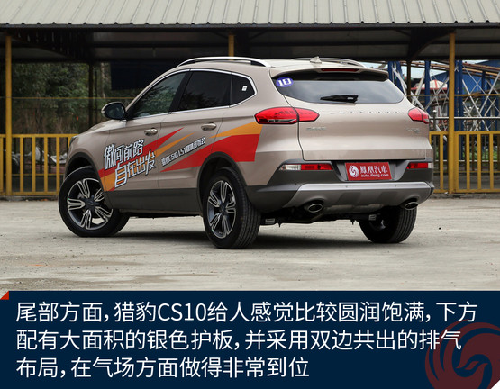 側(cè)面看過(guò)去,獵豹CS10采用一條剛勁十足的腰線(xiàn)從頭燈到尾燈,展現(xiàn)出了蓄勢(shì)待發(fā)的車(chē)身姿態(tài),同時(shí)鍍鉻窗框亮條的使用讓該車(chē)看上去更加豪華大氣。尾部方面,獵豹CS10給人感覺(jué)比較圓潤(rùn)飽滿(mǎn),下方配有大面積的銀色護(hù)板,并采用雙邊共出的排氣布局,在氣場(chǎng)方面做得非常到位。