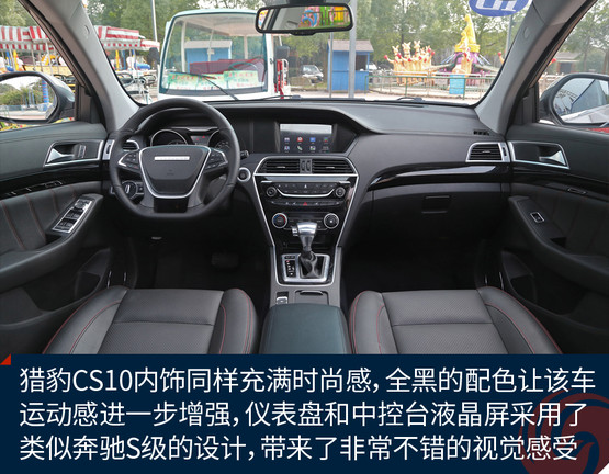 獵豹CS10內(nèi)飾同樣充滿(mǎn)時(shí)尚感,全黑的配色讓CS10的運(yùn)動(dòng)感進(jìn)一步增強(qiáng),儀表盤(pán)和中控臺(tái)液晶屏采用了類(lèi)似奔馳S級(jí)車(chē)型的貫通式設(shè)計(jì),帶來(lái)了非常不錯(cuò)的視覺(jué)感受。用料方面,中控臺(tái)上方面板為搪塑工藝,手感較軟,并且還進(jìn)行了仿縫線(xiàn)處理,讓整個(gè)內(nèi)飾看起來(lái)很有質(zhì)感。