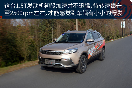 本次我們?cè)囻{的獵豹CS10搭載了一臺(tái)1.5T渦輪增壓氣發(fā)動(dòng)機(jī),最大功率為110kW/5500rpm,最大扭矩為210N.m/2000-4500rpm。傳動(dòng)部分,與這臺(tái)發(fā)動(dòng)機(jī)匹配的是5速手動(dòng)與CVT無(wú)級(jí)變速箱,并采用前置前驅(qū)的驅(qū)動(dòng)形式。