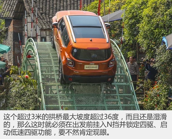 得瑟的原因在于有實力,讓同級別任何一個車型來完成,恐怕都得失敗,所以這更像是一場表演;坐在車里更加深有感觸,河道涉水不算難度,只是有些埋設的交叉軸和炮彈坑,只要速度不快就完全沒難度;然而那個又高又陡的鐵拱橋,沖上鐵橋的一瞬間就是臉朝天屁股朝地,挺嚇人的,下橋的時候就反過來臉朝地屁股朝天,也挺難受的。有驚無險無難度的自由俠在這里秀出了自己真正的實力,同級別最強四驅(qū)和最強非鋪裝通過性實至名歸。