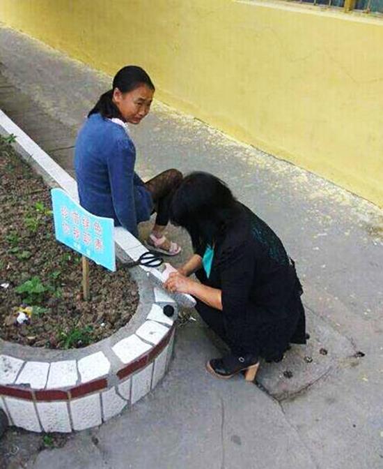 ????近兩天,微信朋友圈流傳一組照片:一位身著黑衣的女子蹲在花壇邊,低頭縫補(bǔ)一只粉色涼鞋(如圖)。旁邊坐著一個小女孩,背過身去拭淚。圖片配文:補(bǔ)鞋的老師像媽媽。這感人一幕發(fā)生在5月21日項城市昌福學(xué)校,該校學(xué)生大部分是留守兒童,補(bǔ)鞋的女子是該校的郭雪梅老師。這件事經(jīng)河南日報客戶端和河南日報官方微博發(fā)布后,在網(wǎng)上引起強(qiáng)烈反響,很多網(wǎng)友表示,這組圖片戳中了心中最柔軟的那一塊。