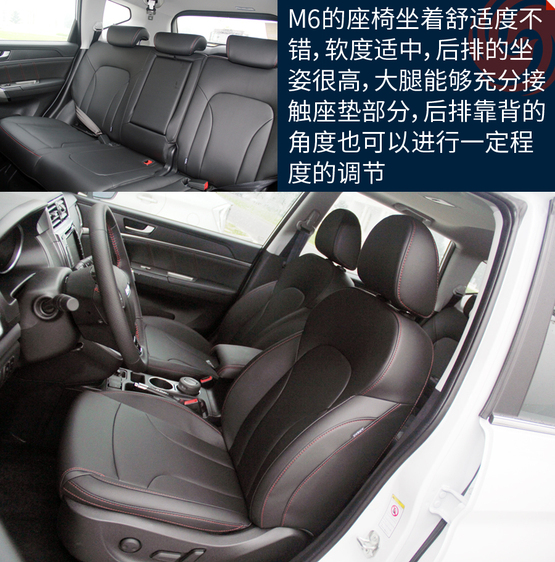 ????????M6的空間表現(xiàn)在同級(jí)別車型當(dāng)中屬于優(yōu)勢(shì)地位,主要原因就是內(nèi)部空間和H6基本沒區(qū)別。特別得說新車的座椅,很柔軟、舒服,包裹性也不錯(cuò)。不過坐姿真的有點(diǎn)高,前排座椅調(diào)到最低后還是能看到整個(gè)機(jī)艙蓋,這樣倒是為了安全性;后排的座椅還要更高一些,有點(diǎn)類似劇院式的設(shè)計(jì),給后排乘客減少了壓抑感。