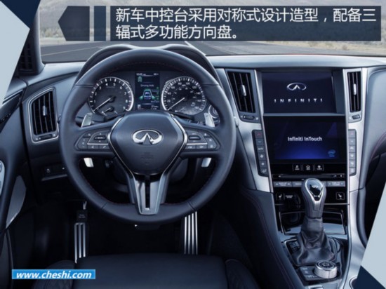 全新英菲迪尼內(nèi)飾配有三輻式多功能方向盤(pán),中央控制臺(tái)為對(duì)稱式造型,采用上下雙顯液晶屏幕。此外,新車(chē)還配備了撥片式換擋、一鍵啟動(dòng)、電子手剎等配置。