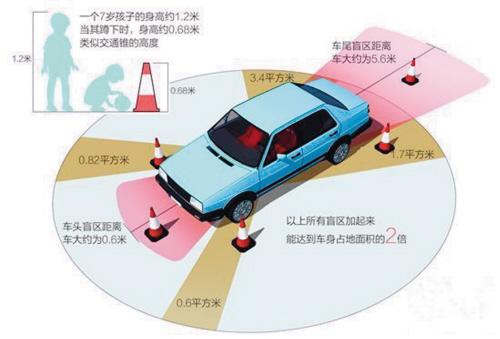 ????據(jù)交管部門有關人士介紹,車頭正前方盲區(qū)對于身高高于1米的兒童,司機一抬頭就能看到,但對于喜歡蹲在車子前邊的貪玩的孩子,或者個子矮的兒童,司機的車頭前方一段距離是沒有視野的,尤其是底盤高的車盲區(qū)更大。因此極易發(fā)生肇事。