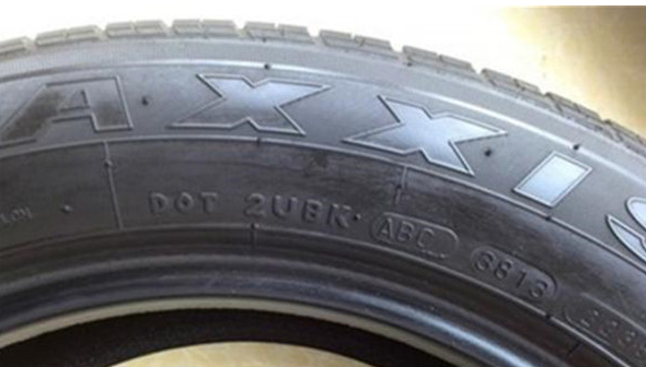 ????一般在輪胎的外側(cè)都有一串?dāng)?shù)字和字母,如下圖所示的數(shù)字“3813”,就是輪胎生產(chǎn)的日期,后兩位代表年份,也就是2013年,38表示輪胎是在13年的第38個周期生產(chǎn)的,也就是266天,共計(jì)8個月,所以輪胎是9分份生產(chǎn)的。