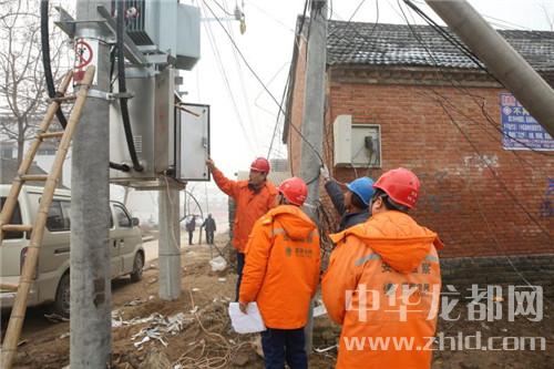 圖為1月16日,縣桐丘電力工程有限公司工程三部施工人員正在對汴崗鎮(zhèn)水泉村進行變壓器更換和高、低壓線路改造施工。