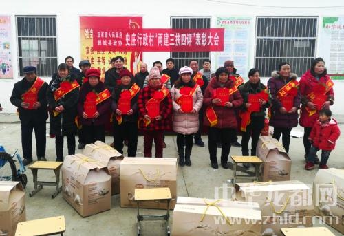 中華龍都網(wǎng)訊(周口報(bào)業(yè)全媒體記者 徐松 通訊員 閆紅旗)1月21日上午,鄲城縣政協(xié)和汲冢鎮(zhèn)黨委、政府,在縣政協(xié)駐村幫扶點(diǎn)史莊村召開(kāi)“兩建三扶四評(píng)”表彰大會(huì),為評(píng)出的16戶孝老愛(ài)親戶、脫貧致富戶、誠(chéng)信守法戶、清潔衛(wèi)生戶頒獎(jiǎng)。