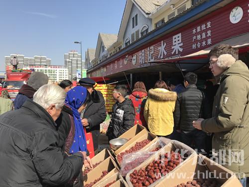 從華耀城出來,記者來到太昊路上的周口黃淮農(nóng)產(chǎn)品大市場,前來置辦年貨的市民絡(luò)繹不絕(圖三、圖四)。市場工作人員介紹:“9點以前,大多是來買蔬菜、海鮮的?,F(xiàn)在11點了,水果批發(fā)區(qū)這會兒正熱鬧?!?/p>