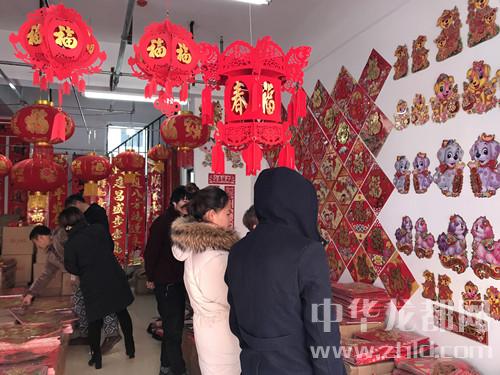近日,華耀城A區(qū)精品市場內(nèi)出現(xiàn)了一條“紅街”,因為這條街上的門店賣的是對聯(lián)、窗花、紅燭等紅色的商品?!芭l(fā)對聯(lián)就年前一個月的好生意,這幾天忙不過來,家里的親戚都來幫忙了!”經(jīng)營對聯(lián)批發(fā)生意的李陽說。他的店里掛著各式各樣的對聯(lián)、年畫(圖二),其中一些帶有小狗元素的裝飾品銷量特別好。