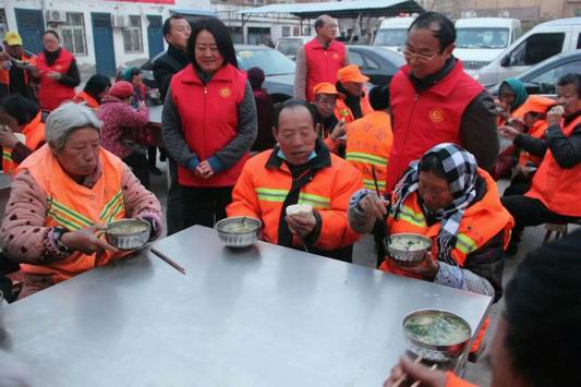 一位老大娘走進就餐點,張玉潔上前把大娘攙扶坐下,忙端來熱騰騰的雞蛋湯、饅頭并讓老人家慢慢吃。老人家哽咽著說:“我是芝麻洼鄉(xiāng)里人,給這住閨女家,走到這見人很多過來看看,沒想到這是免費吃早飯的地方,還都端到跟前、對我恁好,除了俺仨閨女沒有人對我老婆子這樣好過,我是哪輩子修來的福??!