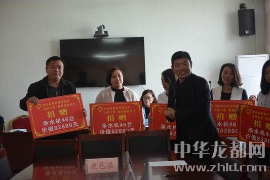中華龍都網(wǎng)訊(周口報業(yè)全媒體記者 李瑞才 文/圖)4月26日上午,2018年“眾情大愛、精準(zhǔn)扶貧”捐贈儀式在鹿邑縣掀開大幕。河南省扶貧開發(fā)協(xié)會、河南省“眾情大愛、精準(zhǔn)扶貧”項目組委會主任衛(wèi)建亞出席儀式并現(xiàn)場向鹿邑縣捐贈1000臺價值180萬元的凈水設(shè)備。來自全縣24個鄉(xiāng)鎮(zhèn)(辦事處)的1000名貧困戶家庭很快就可以飲用到放心安全的“扶貧水”了。