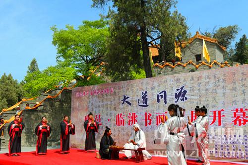 中華龍都網(wǎng)訊(周口報業(yè)全媒體記者 李瑞才/文 通訊員 陳興有/圖)5月4日上午,“大道同源”——鹿邑·臨洮書畫聯(lián)展活動在鹿邑縣明道宮景區(qū)開幕。此次活動由甘肅省臨洮縣人民政府和鹿邑縣人民政府共同舉辦,精選兩地137位書畫藝術(shù)家140余幅作品在鹿邑展出。鹿邑縣領(lǐng)導(dǎo)武衛(wèi)東、劉銀、宋克言、王玉超和臨洮縣委常委、宣傳部長郭志萍等出席開幕式。