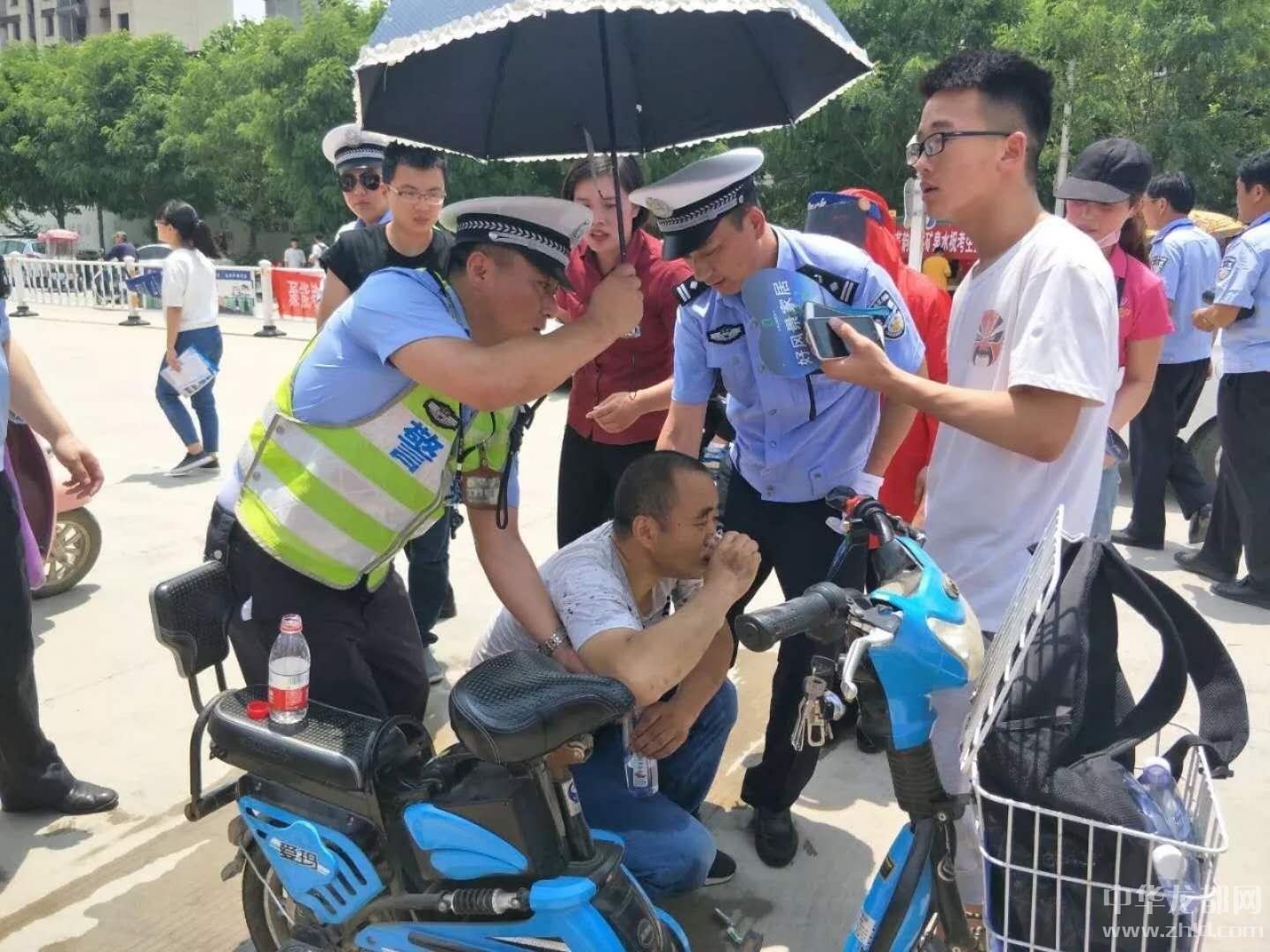 當(dāng)日上午12時(shí)許,在沈丘縣一高大門口附近等待的一名考生家長癱坐在路邊,臉色蒼白,看起來身體極其不適。正在執(zhí)勤的劉濤見狀,一邊上前對(duì)車流、人流進(jìn)行疏導(dǎo),避免圍觀群眾太多引發(fā)意外事故,一邊迅速聯(lián)系沈丘縣人民醫(yī)院120急救車迅速前來搶救。
