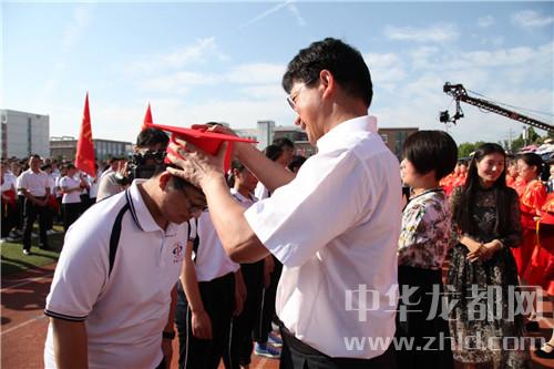 與會(huì)領(lǐng)導(dǎo)分別為成人學(xué)生代表佩戴了成人帽和成人紀(jì)念章,教師和家長(zhǎng)代表也走進(jìn)學(xué)生中間,為學(xué)生佩戴了成人帽和成人紀(jì)念章。