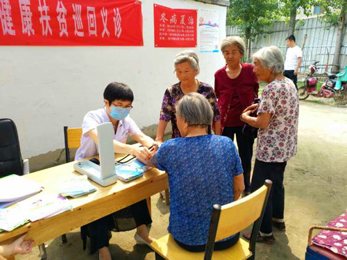 8時40分許,醫(yī)護(hù)人員在文莊社區(qū)衛(wèi)生室的醫(yī)務(wù)人員的協(xié)助下搭起了臨時義診臺,為村民測血糖、量血壓,并針對測量結(jié)果給出用藥指導(dǎo),為村民提供健康咨詢服務(wù),現(xiàn)場解答健康問題,并根據(jù)部分村民身體狀況提出合理的防治建議。