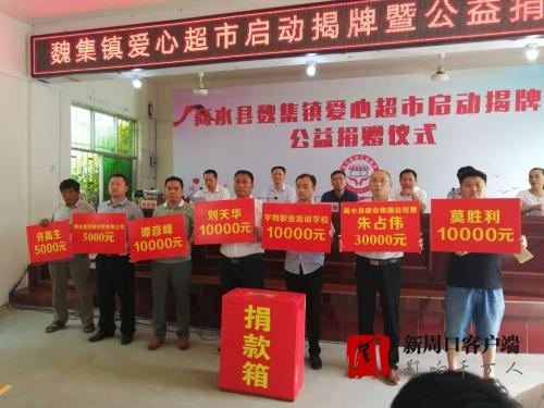 7月17日上午,商水縣魏集鎮(zhèn)舉行“愛(ài)心超市 ”啟動(dòng)揭牌暨公益捐贈(zèng)儀式。來(lái)自全鎮(zhèn)各地的企業(yè)單位代表40多人向“愛(ài)心超市”捐款30多萬(wàn)元。