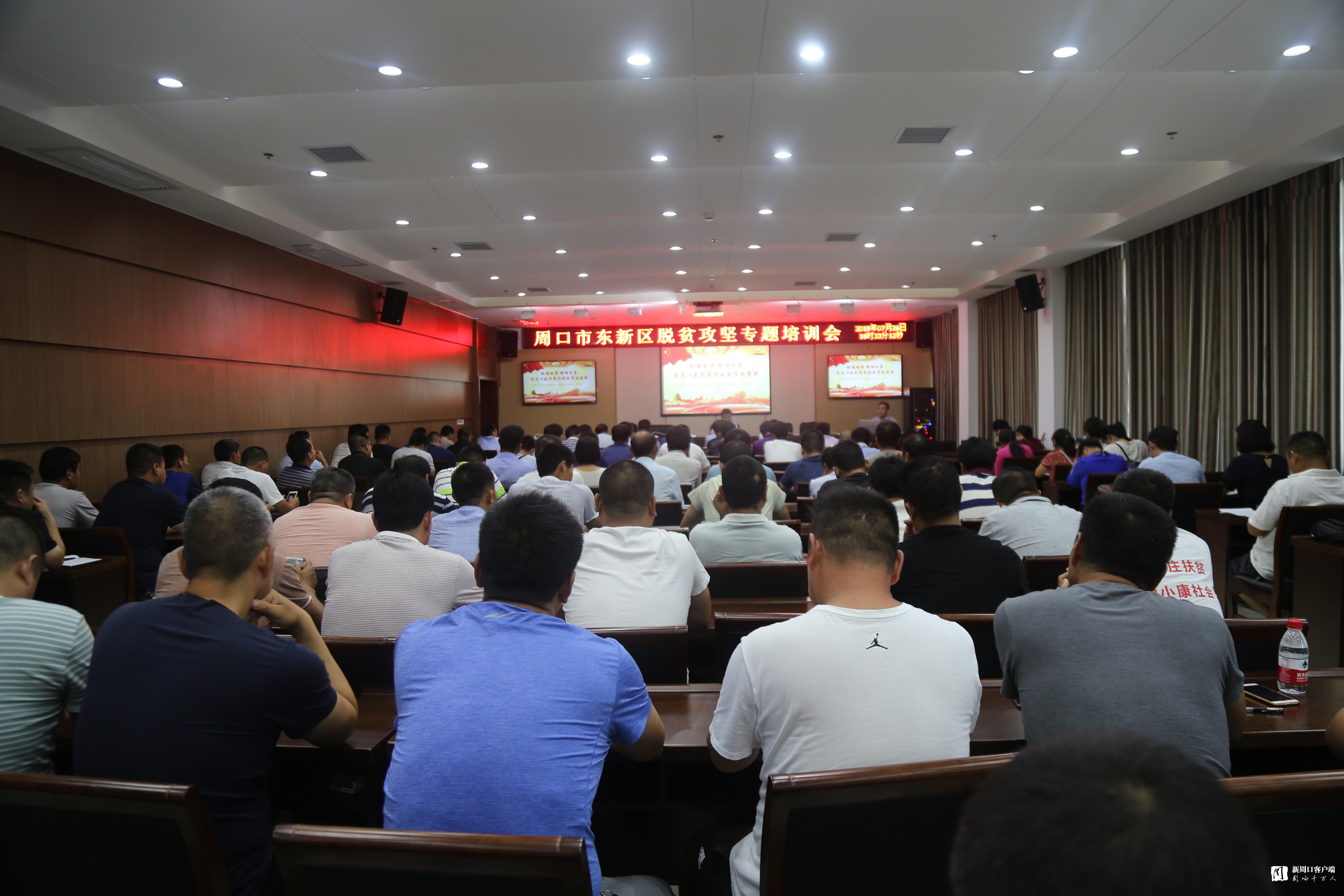 周口日?qǐng)?bào)·新周口客戶端記者 張勁松 通訊員 蘇千 王玉鳳 文/圖 7月26日下午,東新區(qū)召開(kāi)全區(qū)脫貧攻堅(jiān)專題培訓(xùn)會(huì),管委會(huì)副主任李湛主持會(huì)議,各鄉(xiāng)(辦)和區(qū)直單位相關(guān)負(fù)責(zé)人,全區(qū)49個(gè)行政村責(zé)任組組長(zhǎng)、支部書(shū)記、村主任、黨建聯(lián)系人,9個(gè)重點(diǎn)村第一書(shū)記及區(qū)扶貧辦相關(guān)人員共計(jì)300余人參加會(huì)議。