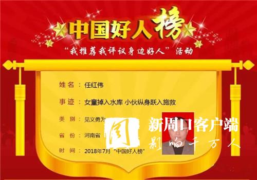 太康縣任紅偉榮登7月份中國好人榜