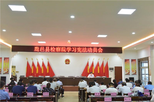 為了弘揚(yáng)憲法精神,切實(shí)履行憲法定位,達(dá)到學(xué)習(xí)憲法、理解憲法、維護(hù)憲法、運(yùn)用憲法的目的,7月30日,鹿邑縣檢察院召開學(xué)習(xí)憲法動(dòng)員會(huì)??h紀(jì)委監(jiān)委駐檢察院紀(jì)檢監(jiān)察組長(zhǎng)、黨組成員王首功對(duì)憲法的序言和憲法修改的背景進(jìn)行了細(xì)致的解讀。院黨組書記、檢察長(zhǎng)魯建軍在主席臺(tái)下認(rèn)真聽、認(rèn)真記,作為一名普通干警一起認(rèn)真聆聽了憲法解讀。