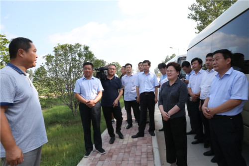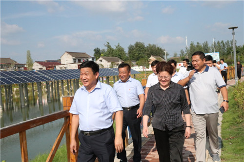 當(dāng)日下午,張穎波一行在太康縣縣長(zhǎng)李錫勇,縣委副書(shū)記、縣政法委書(shū)記王程清等領(lǐng)導(dǎo)的陪同下,先后來(lái)到河南玉柏生物科技有限公司老冢鎮(zhèn)豆丹養(yǎng)殖基地、劉寨漁光互補(bǔ)基地、劉寨村委大院、劉寨文化大院、劉寨扶貧車間及構(gòu)樹(shù)產(chǎn)業(yè)扶貧基地等處考察。
