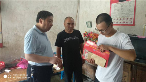 王擁軍局長了解到該貧困戶的情況后通過局黨組會,決定為王凱送去2000元助學金,并鼓勵他再接再勵、艱苦奮斗,樹立遠大的目標和志向,不能因家里條件不好就自悲和氣餒,未來是靠自己的汗水和付出贏得,眼前的困難一定能克服,學有所成后做一個有愛心的青年才俊。